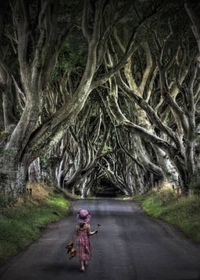 枝や幹、子どもの歩き姿に重厚な佇まい、良いですね。😃