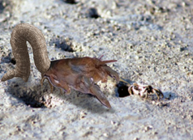 芦毛のマース少佐 目の前の蟹には目もくれず、穴の中に鉤爪を突っ込もうと構えている瞬間です。