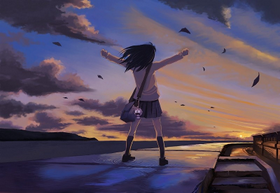 立体感と女性の飛び出し具合が凄い。この人は夕日に向かって何か宣言してるみたいにも見えますね。