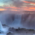 夕陽に染まる滝